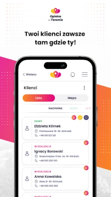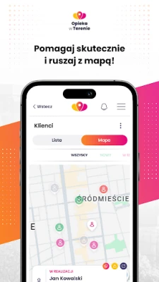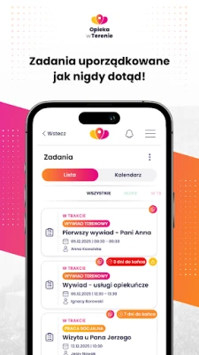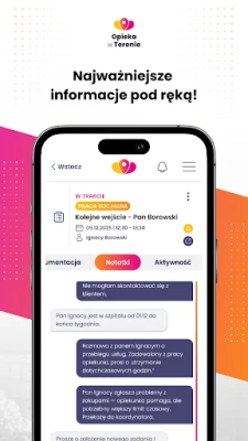 "Opieka w Terenie" er en mobilapplikasjon som er del av System Opieka w Terenie, en omfattende IT-løsning. Den hjelper sosialhjelpsenheter med å organisere, koordinere og dokumentere feltarbeid.