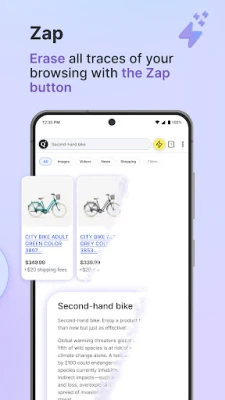 For den ultimate kontrollen over din digitale tilstedeværelse introduserer Qwant en banebrytende funksjon: Zap-knappen. Med et enkelt trykk kan du umiddelbart slette alle dine nettleserdata – ingen tungvinte innstillinger, ingen spor å lete etter. Zap-knappen gir deg friheten til å tømme din nettleserhistorikk når som helst, før eller etter en økt. Ta tilbake eierskapet til dine data og bli del av millionervis som allerede stoler på Qwant-appen for å sikre sitt personvern og surfe nettet med fullstendig ro i sjelen.