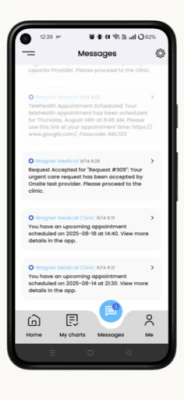 Med fokus på brukervennlighet gir Wagner Medical Clinic deg verktøyene til å ta kontroll over din egen helse. Følg med på kommende avtaler for å unngå glipp av viktige konsultasjoner. Trenger du raskt medisinsk tilsyn? Forespørsler om akuttimer sendes effektivt, slik at du får hjelpen du trenger når det haster. Dykk ned i din journal for å gjennomgå diagnoser, medikamentlister og tidligere behandlingshistorikk. I tillegg får du en detaljert oversikt over alle tidligere besøk og viktige notater fra disse, noe som sikrer full oversikt over ditt medisinske forløp.